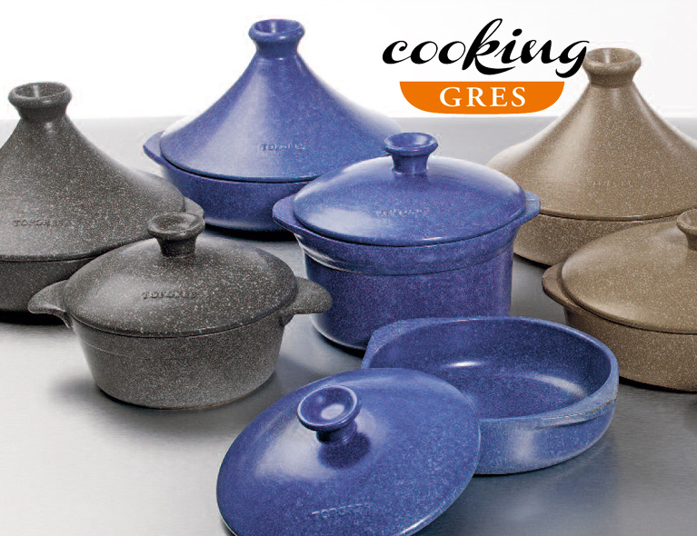 La linea Cooking Gres, prodotta interamente in Italia, è realizzata in Gres smaltato, un tipo di ceramica composta da componenti naturali cotti a 1200° e priva di sostanze chimiche e metalli pesanti; queste caratteristiche garantiscono una totale resistenza a scalfitture, urti e shock termico, diventando così pratiche e utilizzabili su qualsiasi tipo di fonte di calore.