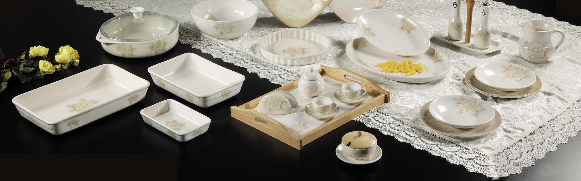 Gli articoli della Collezione Gardenia sono in gres (un particolare tipo di ceramica molto dura e resistente con una elevata temperatura di cottura) possono essere impiegate in lavastoviglie, frigo, freezer, microonde e in forno fino a 200 C°.