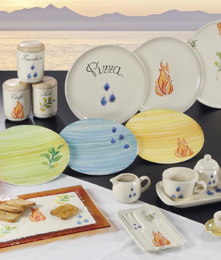 La Collezione Life è caratterizzata da gioiosi decori che richiamano gli elementi della Natura (acqua, fuoco, terra).